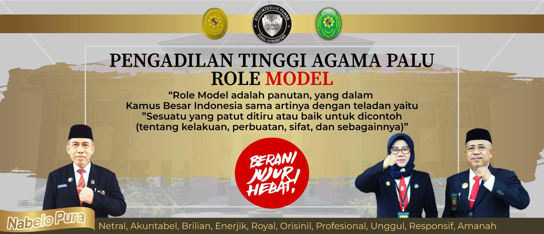 Netral, Akuntabel, Brilian, Energik, Loyal, Orisinil, Profesional, Unggul, Responsif, Amanah